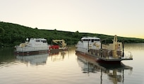 Notional vendor rendering of two Waterways Commerce Cutter variants: a River Buoy Tender (left) and an Inland Construction Tender (right). The CB-ATON-S class will support operations of all three WCCs variants, including the Inland Buoy Tenders that will be acquired under a separate contract. (Image courtesy of Birdon America, Inc.)