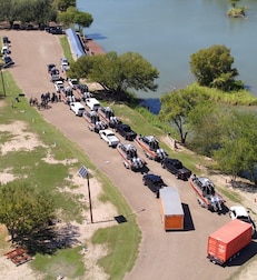 Coast Guard crews patrol the Rio Grande near Mission, Texas Oct. 18, 2025. The Coast Guard is taking immediate and decisive action to control, secure, and defend U.S. borders and maritime approaches, as well as facilitate commerce vital to economic prosperity and strategic mobility and successfully respond to crises or contingencies that may come with little or no warning. (U.S. Coast Guard video)