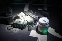 Coast Guard Cutter Tampa's (WMEC 902) crew displays contraband seized during a recent interdiction on the flight deck about 270 nautical miles southeast of the Galapagos Islands in the Pacific Ocean, Oct. 8, 2025. The interdiction was part of counterdrug operations in the Eastern Pacific. (U.S. Coast Guard photo by Petty Officer 2nd Class Gunner Revlett)