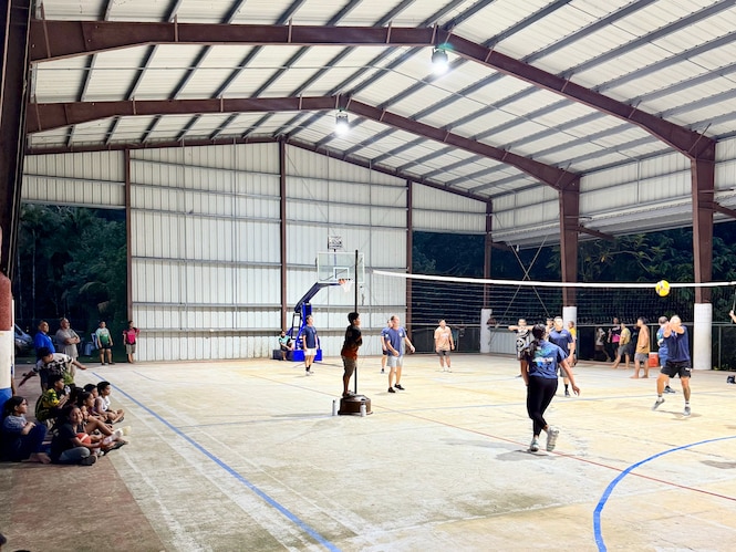 The USCGC Myrtle Hazard (WPC 1139) crew plays volleyball against all-stars in Kosrae on Nov. 25, 2025, during community engagements that deepen ties through sport. The crew returned home Dec. 14, 2025, after completing a successful expeditionary patrol under Operation Blue Pacific, deepening partnerships with Pacific nations and bolstering maritime security in the region. The Sentinel-class fast response cutter crew operated for over 500 hours, patrolling 5,380 nautical miles from Nov. 17 to Dec. 14, with 15 days dedicated to providing a persistent presence in the exclusive economic zones of the Federated States of Micronesia and the Republic of Palau, as well as on the high seas. (U.S. Coast Guard photo)