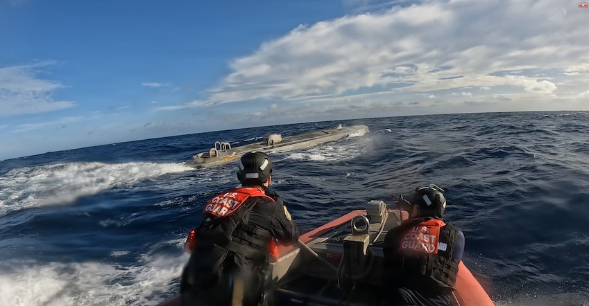 The U.S. Coast Guard Cutter Forward’s Over-the-Horizon cutter boat approaches a Self-Propelled Semi-Submersible in the Eastern Pacific Ocean, February 24, 2026. (U.S. Coast Guard courtesy photo)