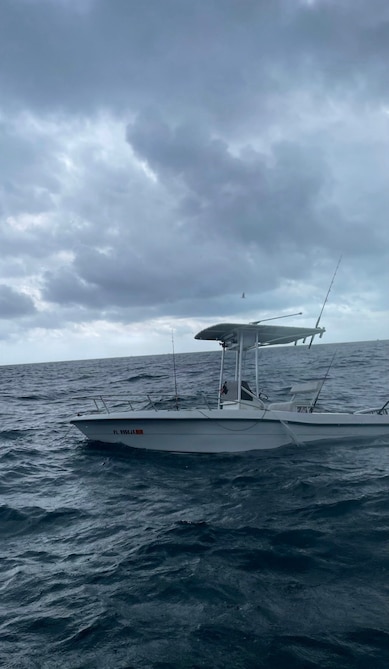A U.S. Coast Guard Station Miami Beach boat crew arrived on scene with a vessel taking on water near Virginia Key, Florida, March 13, 2026. The boat crew transported the three individuals to Crandon Park Marina with no injuries reported. (U.S. Coast Guard courtesy photo)
