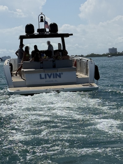 Coast Guard Sector Miami law enforcement officers, along with federal and state law enforcement partners, conduct a boarding of a 39-foot recreational vessel, LIVIN, in the vicinity of Indian Creek, Florida, March 14, 2026. During the boarding, it was determined that the vessel was being operated as an illegal small passenger vessel with 5 passengers for hire. (U.S. Coast Guard photo)