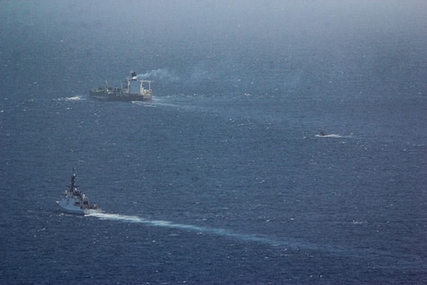 The Legend-class USCGC Stratton (WMSL 752) assumed escort duties of motor tanker Sophia and escorted the vessel from an anchorage south of Puerto Rico to an at-sea transfer with Venezuela for further disposition, Jan. 27, 2026. The Stratton’s crew returned to their home port in Alameda, California, after sailing more than 16,000 nautical miles and completing a 79-day patrol in the Caribbean. U.S. Coast Guard courtesy photo.