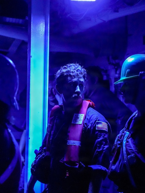 Petty Officer 2nd Class Peter Garcia, a boatswain’s mate assigned to Legend-class cutter USCGC Midgett (WMSL 757), prepares to board the 35-foot Long Range Interceptor-II cutter boat as a boat crew member, during the rescue of three members of a missing family from their 23-foot single-outboard skiff vessel in the waters of Chuuk State, Federated States of Micronesia during the early hours of April 6, 2026. The crew of Midgett rescued the family after the vessel went missing on March 30 in the waters of Chuuk State. U.S. Coast Guard missions in the Indo-Pacific focus on issues that directly support and advance our regional partners’ efforts to protect fish stocks and ensure the safety of life at sea, helping to ensure a secure and prosperous Indo-Pacific. (U.S. Coast Guard photo by Petty Officer 3rd Class Jennifer Nilson)