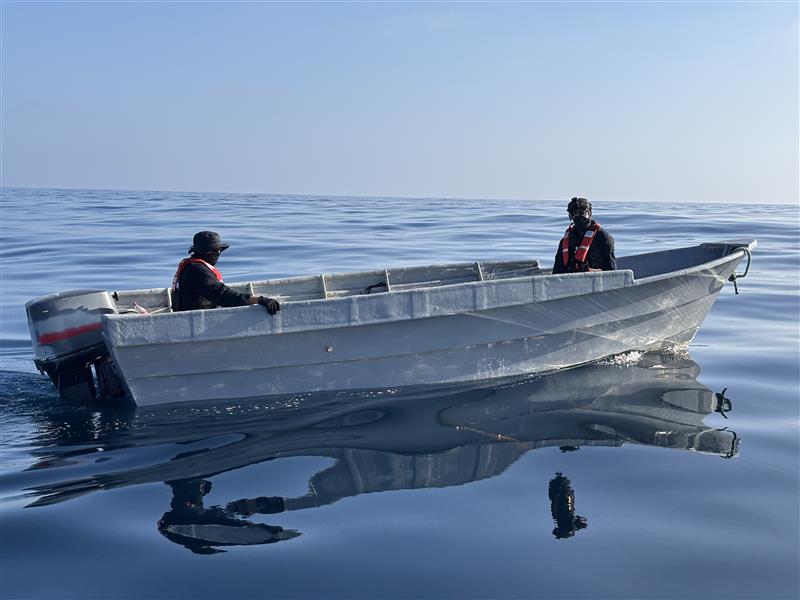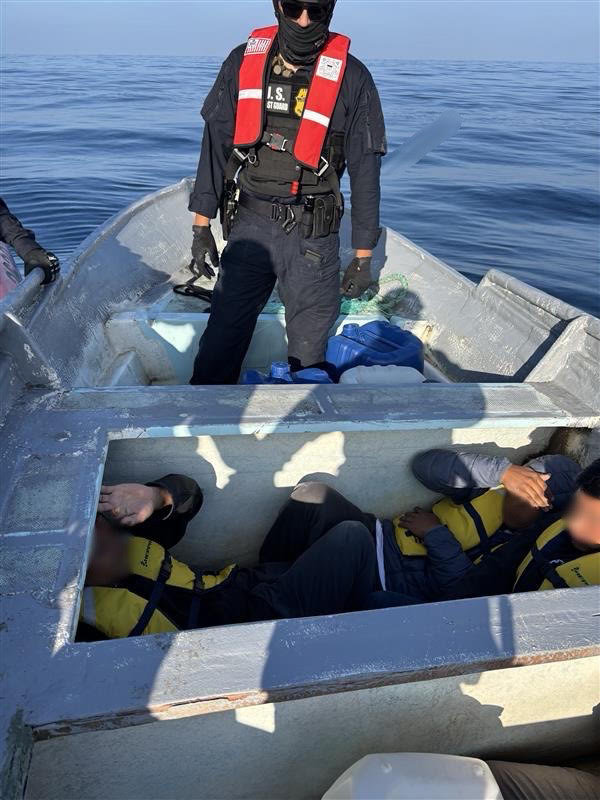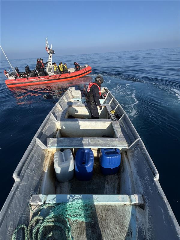 The crew of the Coast Guard Cutter Forrest Rednour (WPC 1129) interdicts 11 suspected aliens aboard a panga vessel approximately 13 miles northwest off the coast of Mission Bay, San Diego, October 28, 2025. Crew members aboard the Forrest Rednour detained all 11 people and transferred them to another DHS agency at Ballast Point for further investigation. (U.S. Coast Guard courtesy photo)