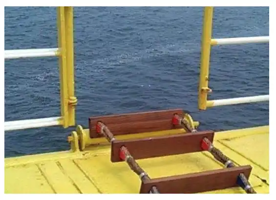 This Safety Alert addresses the importance of verifying the correct arrangement of handholds in embarkation gate arrangements aboard merchant vessels. The Coast Guard is currently investigating a casualty involving a fall from a pilot ladder where the handholds in the gate arrangement aboard the vessel terminated without being rigidly secured to the vessel’s structure. This termination left a gap in the handholds at the transition point at the head of the pilot ladder, where an embarking person might reach to pull themselves onto the vessel.